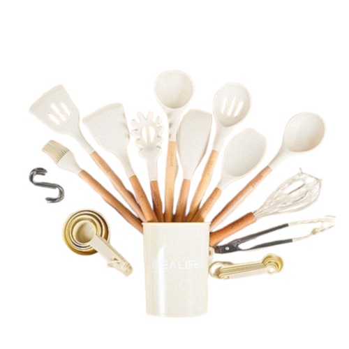 IDEALIFE Kitchen Utensils Spatula Sodet Tools (Silicone & Beech) IL-172A Beige