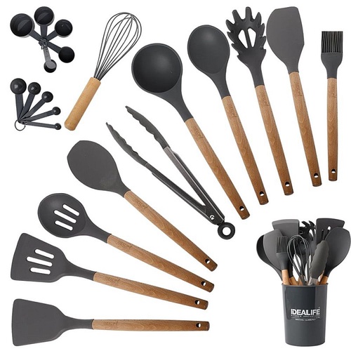 IDEALIFE Kitchen Utensils Spatula Sodet Tools (Silicone & Beech) IL-172A Grey